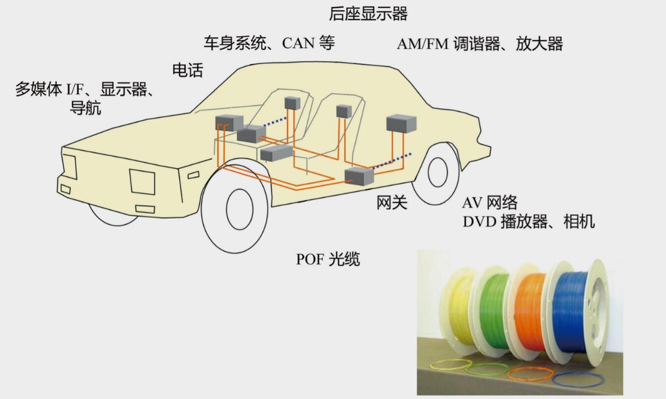 ● 4. 重量輕,節(jié)省汽車布線空間,連接多媒體設(shè)備傳輸同步數(shù)據(jù)、非同步數(shù)據(jù)以及控制數(shù)據(jù);